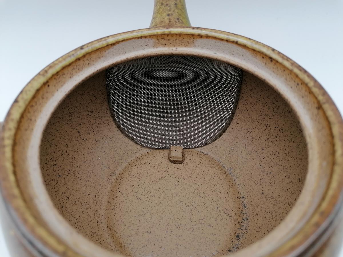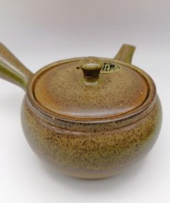 Questa kyusu è in ceramica naturale, dalla linea semplice ed elegante, impreziosita da una smaltatura sui toni del verde-ocra. Il filtro in fine maglia di acciaio è posizionato all’interno, direttamente alla base del beccuccio, in modo da renderne pratici l’utilizzo e la manutenzione.